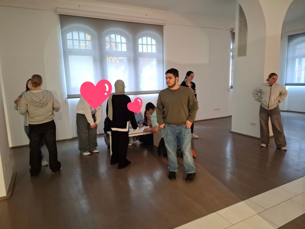 Viel Spaß hatten die Schüler*innen der Gemeinschaftsschule am Brenzpark mit den vier KulturStarter*innen Noah, Kira, Fiona und Huba, die für einen ganzen Vormittag Aktivitäten und Spiele für die 5. Klasse vorbereitet hatten. Die Kulturstarter*innen hatten sich dafür jeweils ein Spiel ausgedacht, das sie dann angeleitet und gemeinsam mit den Schüler*innen durchgeführt haben. Nachdem Kira mit einer Vorstellungsrunde begann, setzte Noah die Spielerunde mit „Menschen Memory“ fort, einem Spiel, bei dem ein Pärchen an derselben Bewegung erkannt werden soll.