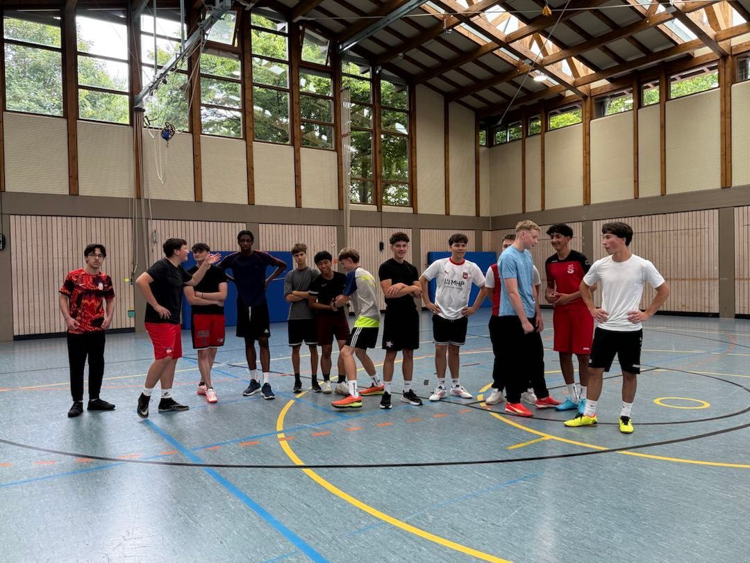Drei Teams waren am Start: zwei Schülerteams aus dem Sport-Profilfach 9 und eine Mannschaft aus sportbegeisterten Lehrerinnen und Lehrern. Nach spannenden Gruppenspielen standen sich Team 1 der Neuntklässler und das Lehrerteam im Finale gegenüber.
