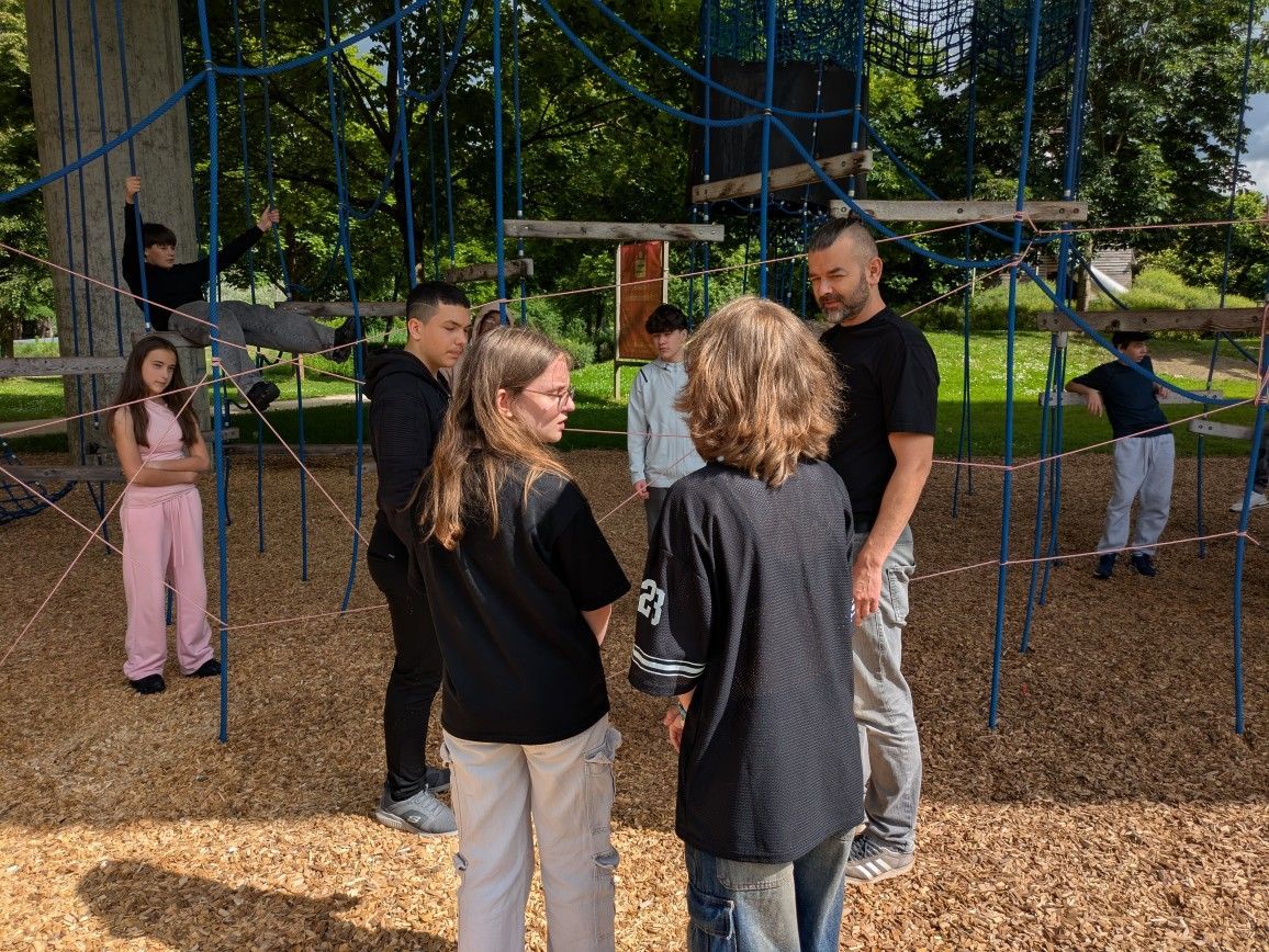 Am letzten Schultag vor den Pfingstferien fand an unserer Schule ein besonderes Highlight statt: Die Sport-Profiler der Jahrgangsstufe 9 organisierten einen abwechslungsreichen WIR-Mitmachtag im Brenzpark. Von 9:00 Uhr an hatten alle Klassen die Möglichkeit, an elf kreativen Stationen ihr Geschick, Wissen und Teamgeist unter Beweis zu stellen. Ob beim Hangeln, Kegeln, Rätseln oder Tauziehen – überall stand der Gemeinschaftsgedanke im Mittelpunkt. Die abwechslungsreichen Angebote sorgten für gute Stimmung, viel Bewegung und jede Menge Spaß bei allen Teilnehmenden.