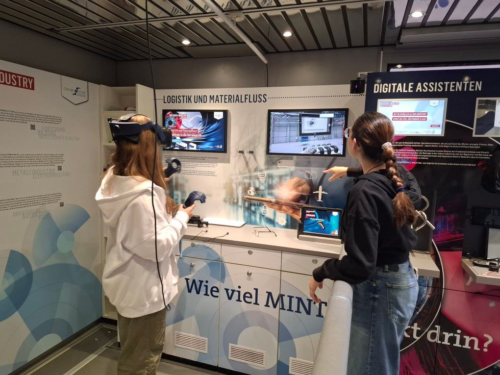 Besonders interessant war dabei auch der Schweiß-Simulator mit einer VR-Brille und die Programmierung eines Roboterarms, bei welchen bestimmte motorische Fähigkeiten getestet wurden. Die Schülerinnen und Schüler hatten die Möglichkeit, den Auszubildenden Fragen zu ihren Berufen und Aufgaben zu stellen. Somit konnte herausgefunden werden, welche Interessen und Fähigkeiten man bei den unterschiedlichen Berufsausbildungen mitbringen sollte.