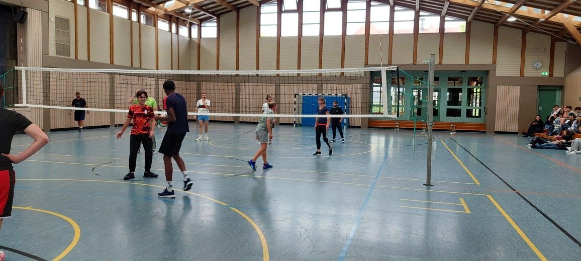 Dort sah es zunächst nach einem klaren Sieg für das Schülerteam aus – starke Spielzüge und eine schnelle Führung. Doch die Lehrer gaben nicht auf: Mit einer Serie starker Aufschläge kämpften sie sich Punkt für Punkt zurück. Am Ende konnte sich das Lehrerteam knapp mit 25:20 durchsetzen.