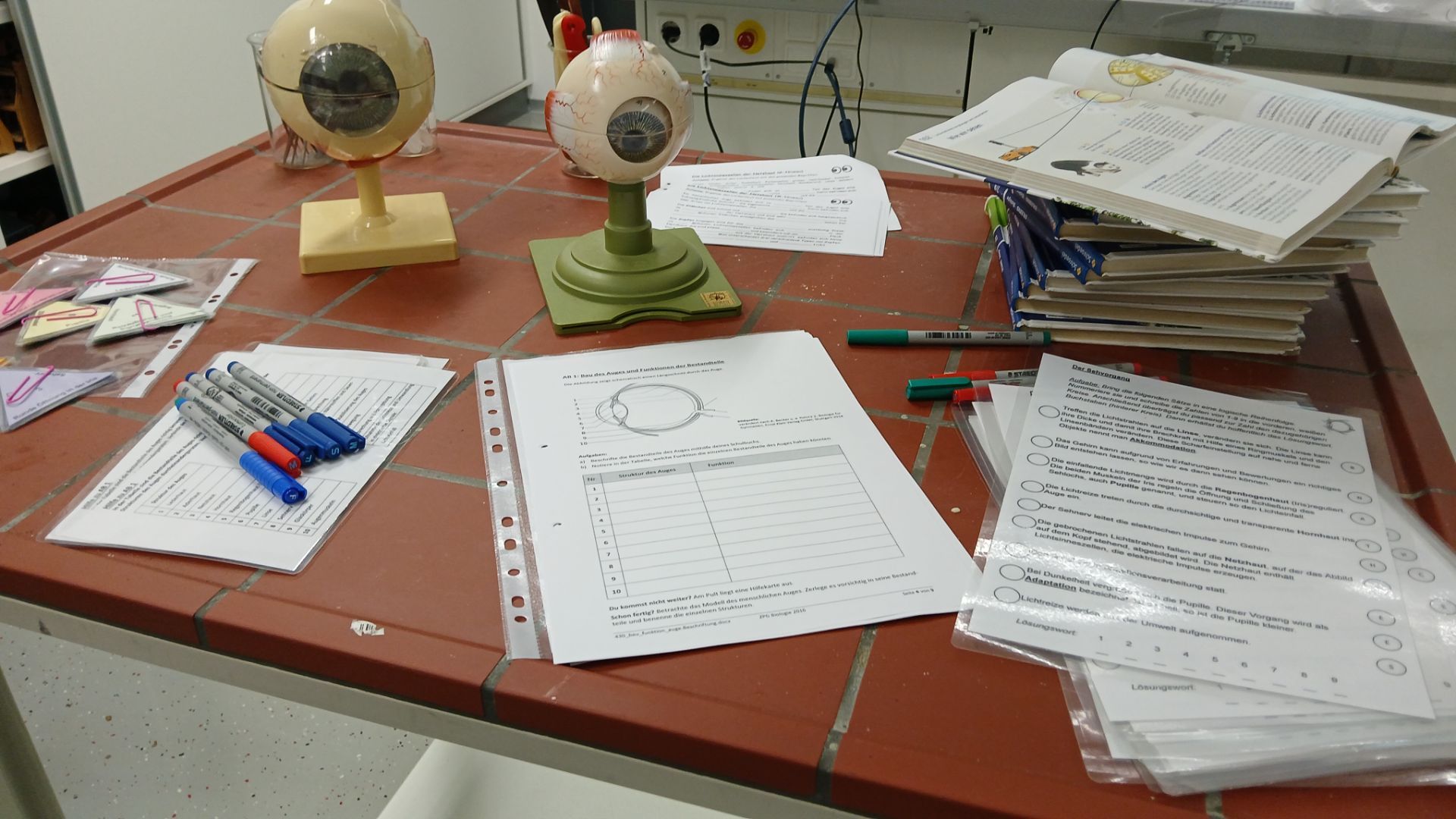 Heute waren die 9er selbst Forscher und Entdecker. Frau Rangnick organisierte Schweineaugen, an denen der Aufbau des Auges "in echt" erkundet werden konnte. Die Schüler:innen präparierten die Augen selbst nach einer Anleitung und konnten so den Aufbau eines Auges studieren. Nach kurzer Überwindung hatten sie sichtlich Spaß und zeigten stolz die selbst herausgeschnittenen Bestandteile. Wer nicht daran teilnehmen wollte, hatte die Möglichkeit über verschiedenste Materialien die gleichen Inhalte zu erlernen. An dieser Stelle vielen Dank an Frau Rangnick für die Organisation, Vorbereitung und Durchführung.
