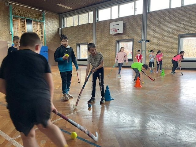 Nils, der FSJ’ler der Hockeyabteilung, hatte dafür das komplette Hockey-Equipment im Gepäck – Schläger, Bälle und vor allem jede Menge Begeisterung für seine Sportart. In zwei abwechslungsreichen Sportstunden probierten die Kinder verschiedene Übungen aus, sammelten erste Erfahrungen im Umgang mit dem Hockeyschläger und hatten dabei sichtlich Spaß. Vielleicht hat ja sogar jemand seine neue Lieblingssportart entdeckt!