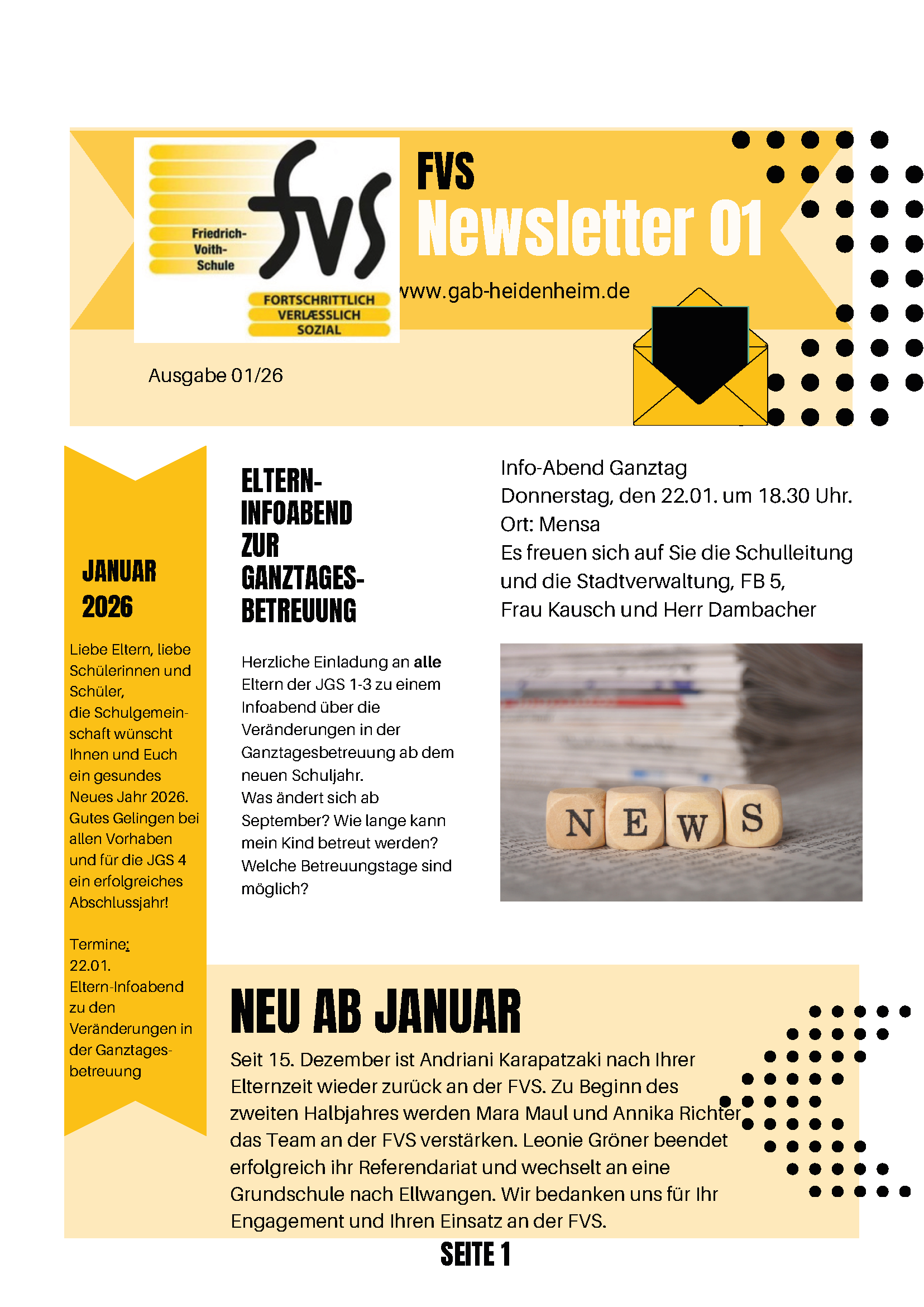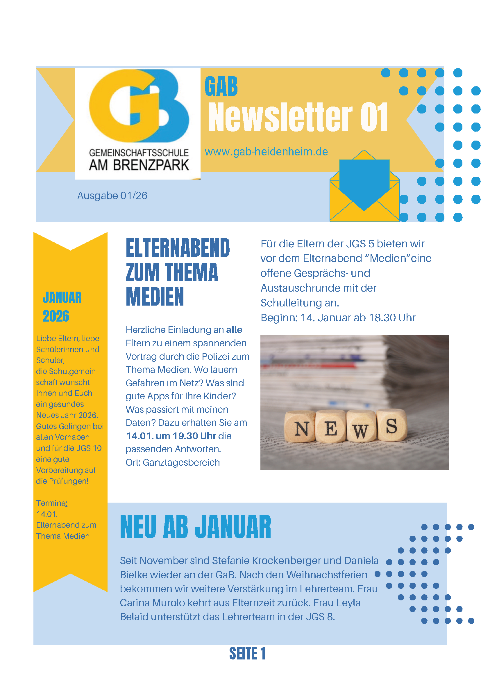Mit unserem neuen Newsletter informieren wir euch regelmäßig über das Schulleben der FVS & GaB. Eltern und Schülerinnen und Schüler erhalten darin aktuelle Einblicke, Termine und Neuigkeiten bequem über den Schulmanager. Heute stellen wir den Newsletter erstmals auf unserer Website vor.