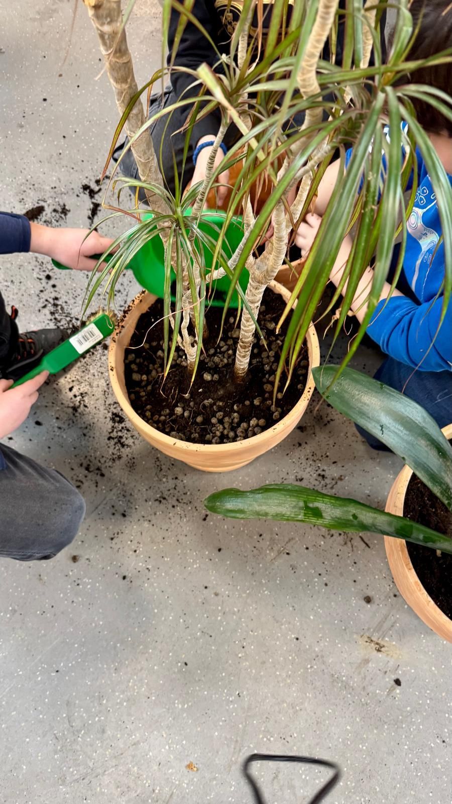 Die Lerngruppe 5b ist aktiv geworden: gemeinsam haben die Schülerinnen und Schüler die Pflanzen im Eingangsbereich unserer Schule umgetopft und ihnen damit neuen Raum zum Wachsen gegeben. In kleinen Gruppen bereiteten sie die neuen Töpfe vor, füllten frische Erde ein und setzten die Pflanzen vorsichtig um. Dabei lernten sie ganz praktisch, wie man richtig umtopft und worauf man achten muss, damit die Pflanzen gut weiterwachsen. Außerdem war Teamarbeit gefragt: Wer hält die Pflanze? Wer schaufelt Erde nach? Wer räumt auf? Die Schülerinnen und Schüler sprachen sich ab, halfen sich gegenseitig und arbeiteten zuverlässig zusammen. So wurde nicht nur der Eingangsbereich verschönert, sondern auch die Zusammenarbeit in der Klasse gestärkt.